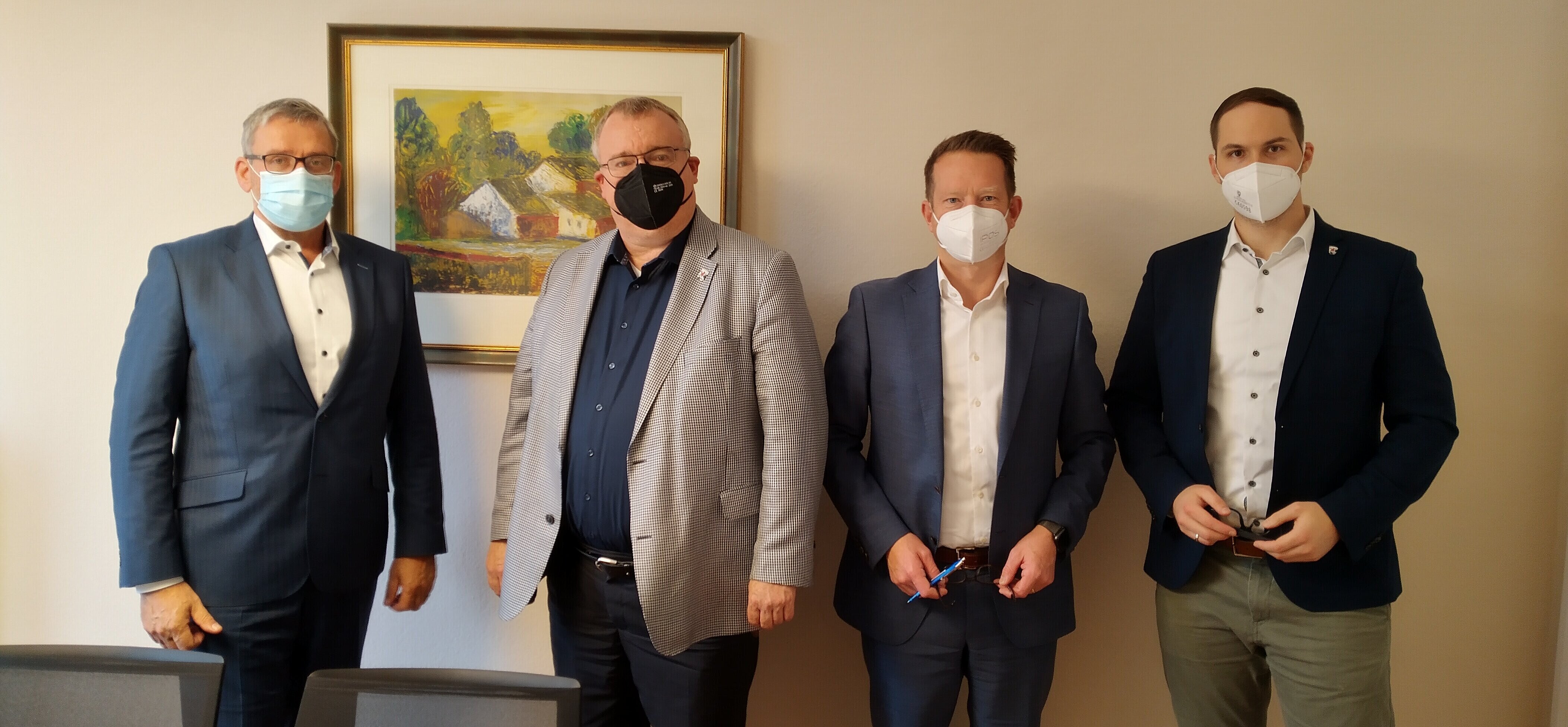 v.l.: HLG Geschäftsführer Dr. Gerald Kunzelmann, Bürgermeister Klaus Schindling, Notar Dr. Jan-Ulrich Thiersch, Simon Bär (Stadt Hattersheim am Main)