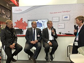 Am zweiten Messetag fand u.a. im Rahmen des "Talk am Messestand" ein moderiertes Fachgespräch zum Thema "Smarte und nachhaltige Quartiersentwicklung in Hessen: Wege zum Plus-Energie-Standard" statt.