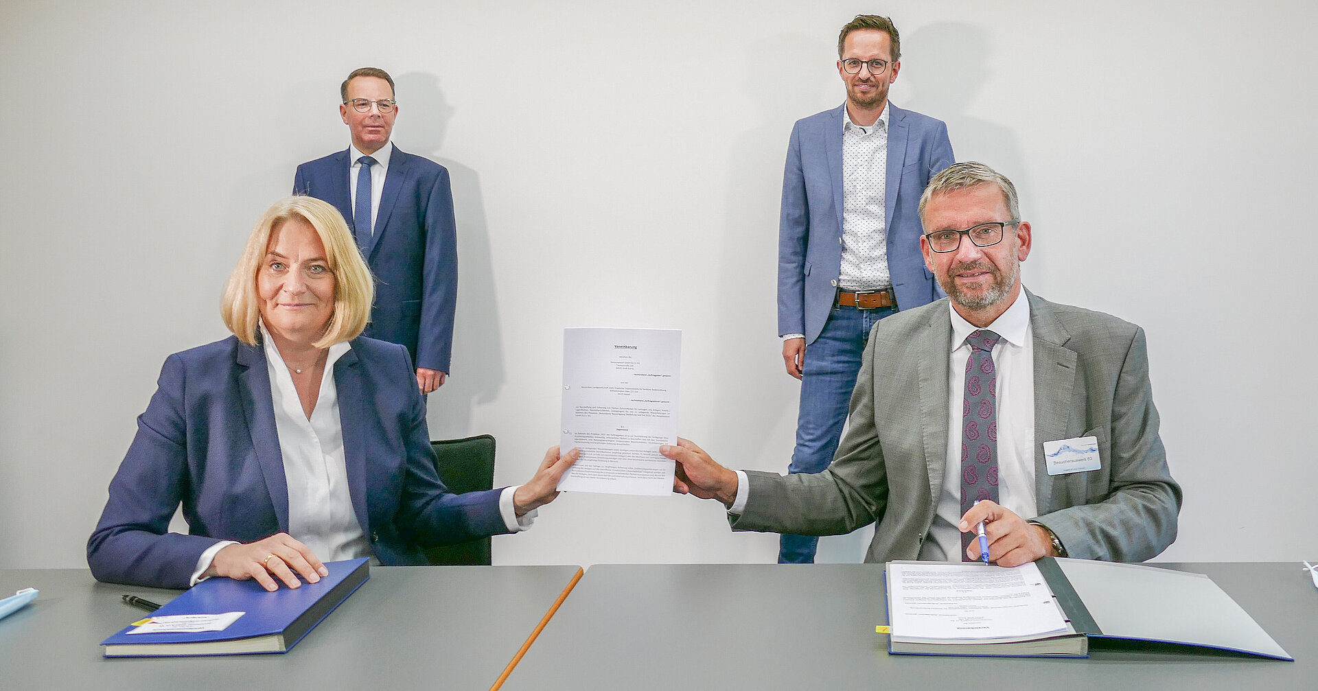 Am 16. Juli 2021 unterzeichneten Elisabeth Jreisat (Geschäftsführerin Hessenwasser) und Dr. Gerald Kunzelmann (Geschäftsführer HLG) den gemeinsamen Vertrag.