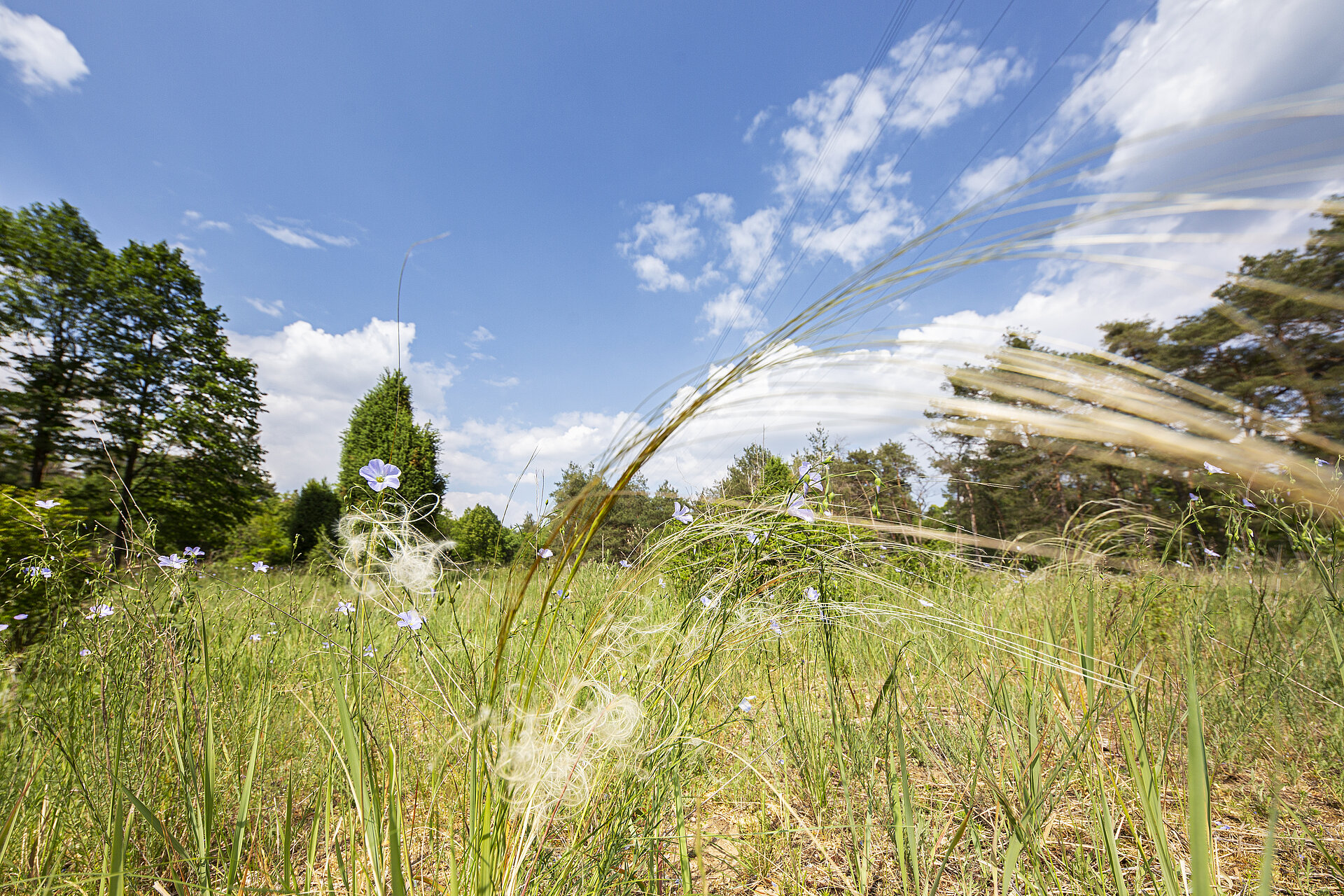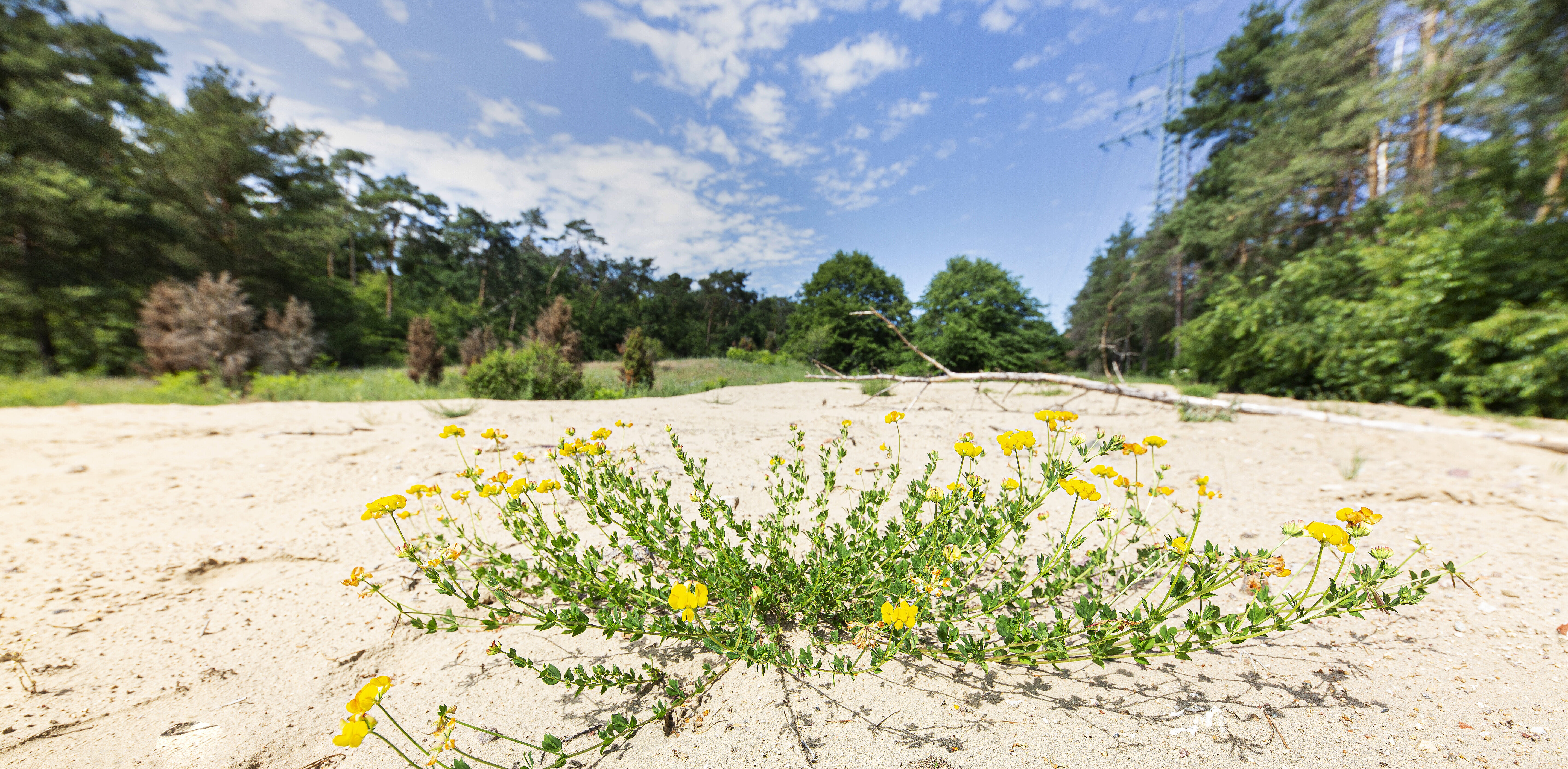 Auf warmen, trockenen und sandigen Flächen leben viele, auf Sandflächen und offene Böden spezialisierte Insekten. Sozusagen gegen den Trend – also gegen das Insektensterben - fördern wir hier die Insektenvielfalt. Auch viele seltene Pflanzenarten, die mit Trockenheit, Wärme und mageren Böden gut zurechtkommen und auf hochgedüngten landwirtschaftlichen Flächen nicht überleben können, sind hier zu finden. Die ganze Vegetationsperiode über gibt es einen schönen Blühaspekt. Nutznießer sind zum Beispiel viele Vogelarten die zum Fressen auf die RWE-Trasse kommen. Grün- und Grauspecht bedienen sich an den Ameisenvorkommen, Wiedehopf und Wendehals könnten in den nächsten Jahren folgen. Auf benachbarten Magerrasen findet sich schon heute die seltene Heidelerche, vielleicht findet sie ihren Weg auch auf die RWE-Trasse.
