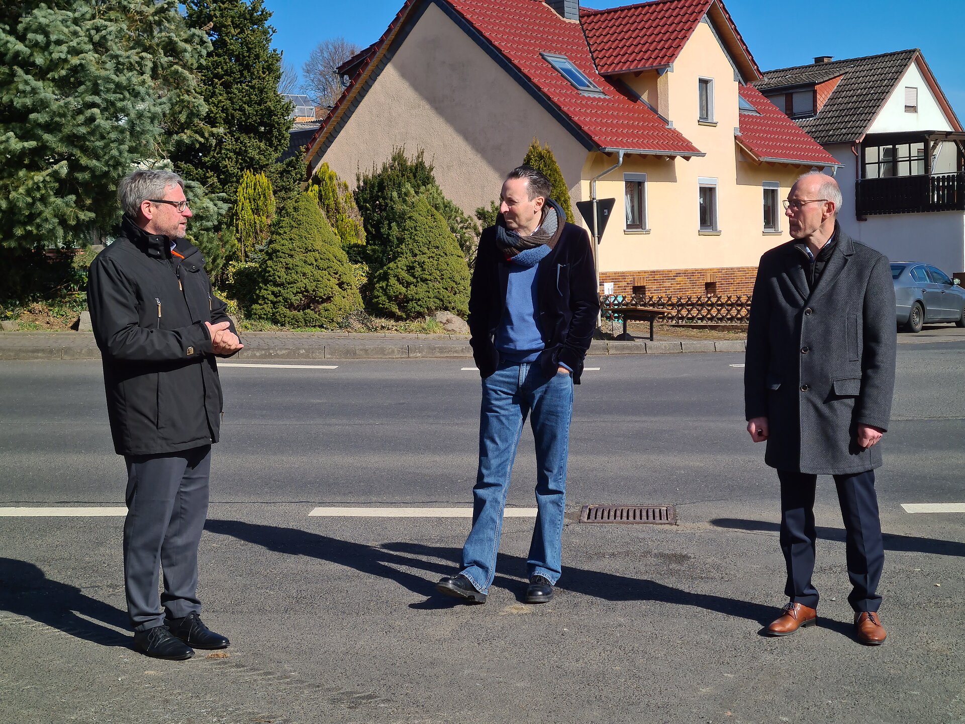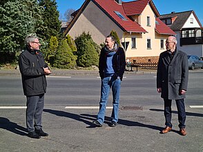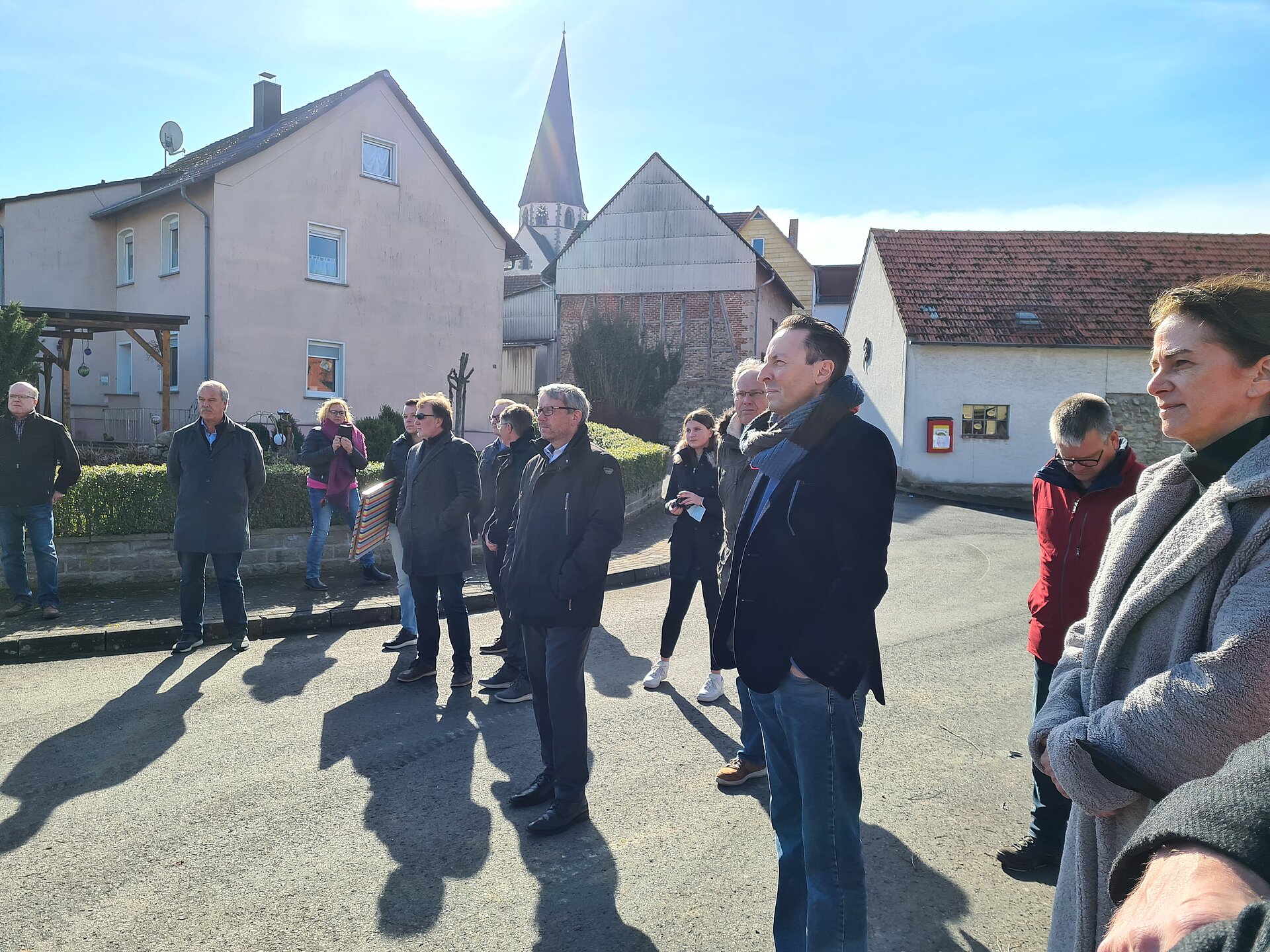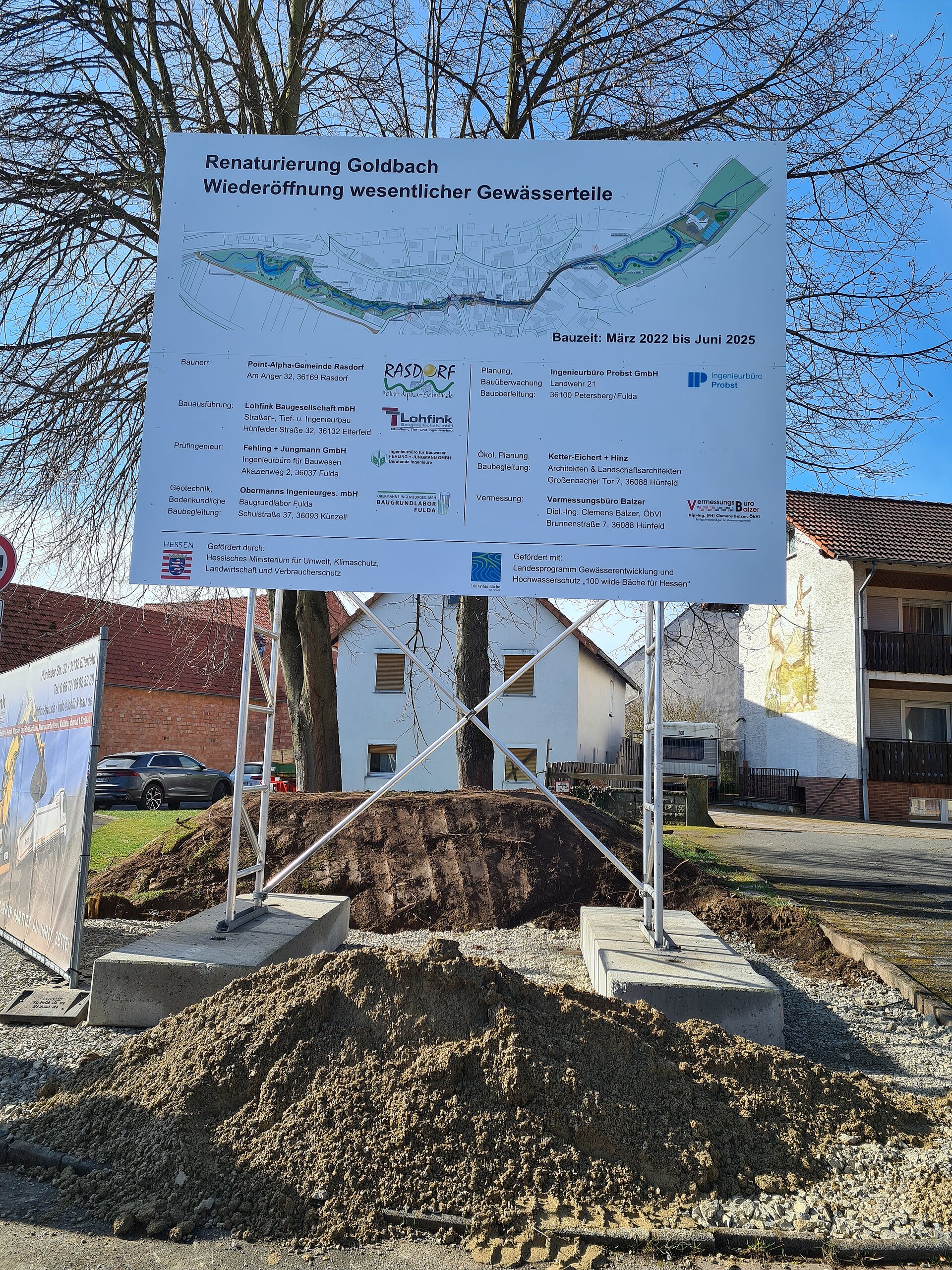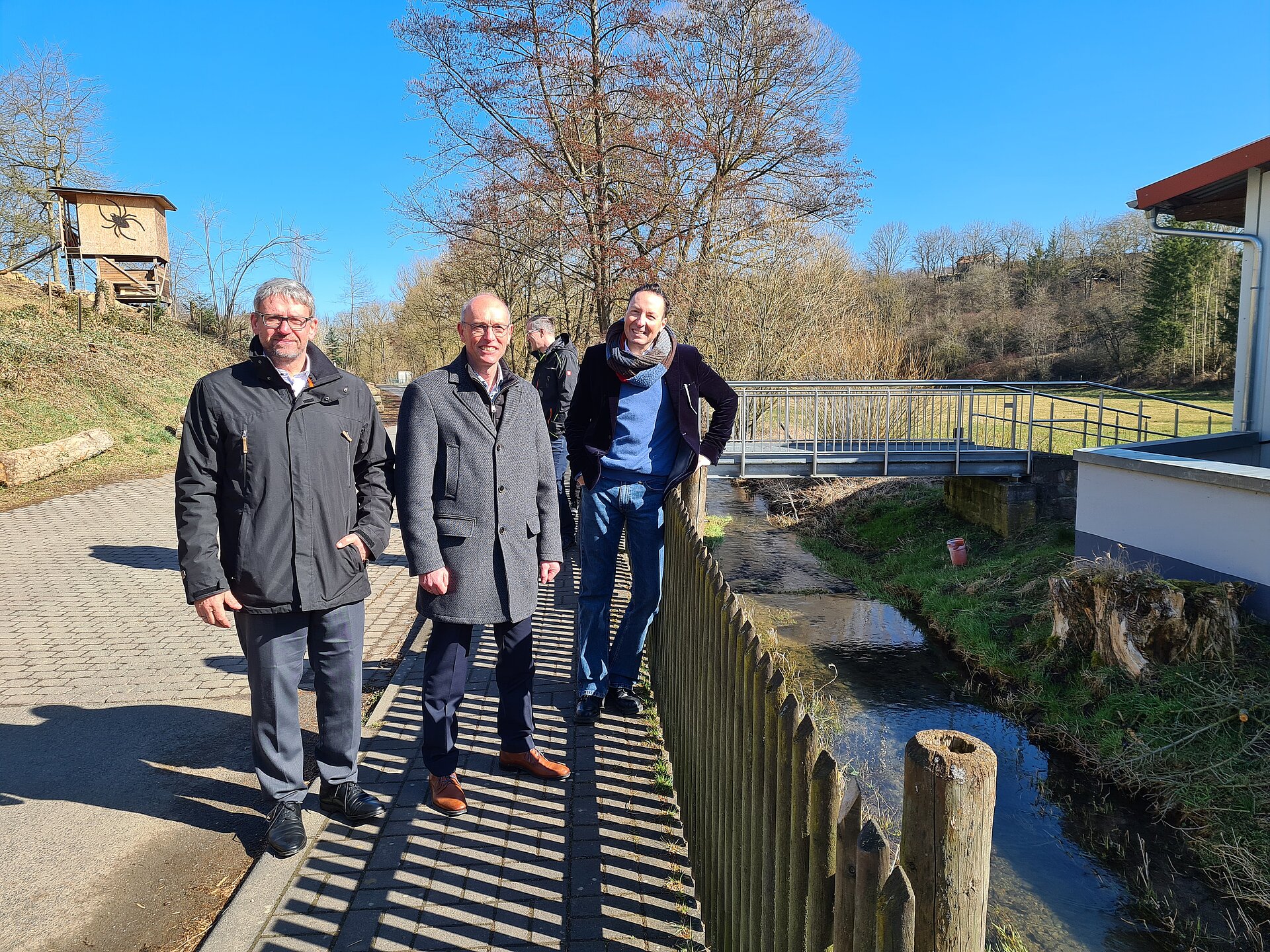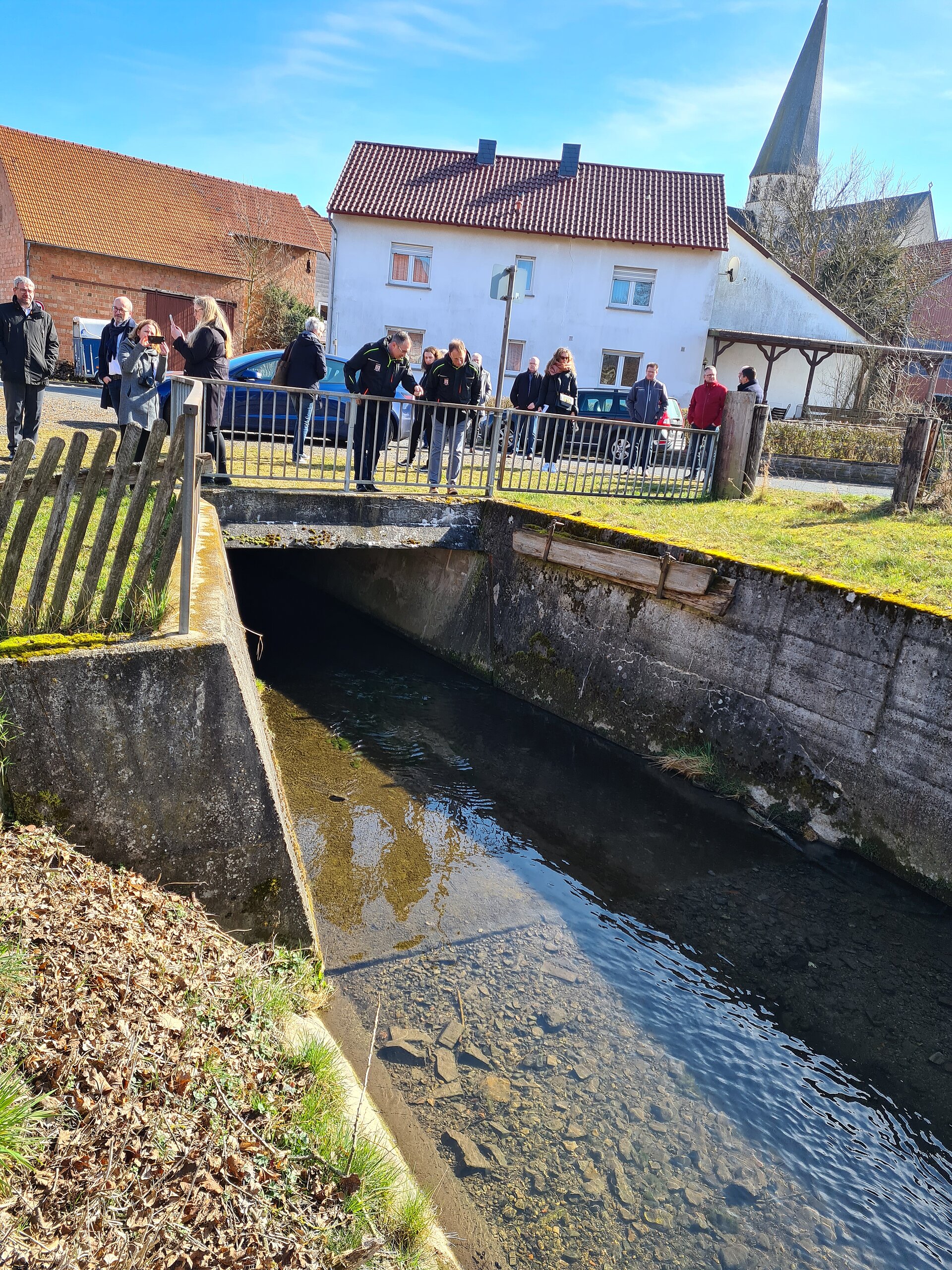 Am 18. März fand der Spatenstich des Projektes "100 Wilde Bäche" am Grüsselbach, welcher auch liebevoll „Goldbach“ von der Point-Alpha-Gemeinde Rasdorf genannt wird, statt. Der Goldbach durchfließt das Gemeindegebiet von Rasdorf auf einer Länge von circa 9,9 Kilometer und liegt anteilig im Vogelschutzgebiet „Hessische Rhön“ und im Fauna-Flora-Habitat-Gebiet „Vorderrhön“. Bürgermeister Jürgen Hahn begrüßte fröhlich alle Gäste am Treffpunkt und bedankte sich herzlich für die große Anteilnahme. Sein Ziel ist es mit der Renaturierung des Goldbaches bis 2025 fertig zu sein. Für die Gemeinde ist die Maßnahme ein großer Meilenstein, welcher seit 10 Jahren geplant ist. Mit der Renaturierung möchte Bürgermeister Jürgen Hahn den Hochwasserschutz, die Wasserqualität und die Lebensqualität des Goldbaches und seiner Gemeinde verbessern und aufwerten. Der Goldbach soll wieder in seinen natürlichen Ursprung zurückfinden und zu einem Aushängeschild der Gemeinde werden. Staatssekretär Oliver Conz vom HMUKLV war im Rahmen des Programmes „100 Wilde Bäche für Hessen“ vor Ort. Er freut sich riesig auf das Projekt und möchte, dass die Menschen den Goldbach wieder erleben können. Sie sollen an das Wasser kommen um zu beobachten, den Goldbach wieder in ihren Alltag integrieren. Diese Punkte ermutigen ihn immer weiter zu machen. Für die Renaturierung wurde ein Förderbescheid über 5,3 Millionen Euro (Insgesamt: 7,3 Mio. Euro - Anteil Land 5,3 Mio. Euro – Anteil Kommune 2,0 Mio. Euro) bereitgestellt. Oliver Conz bedankte sich bei unserem Geschäftsführer Dr. Gerald Kunzelmann, dass wir als HLG die Aufgabe der Betreuung und Unterstützung der Kommunen bei der Umsetzung der Renaturierung übernommen haben und vorantreiben konnten. Dr. Gerald Kunzelmann bedankte sich für das große Vertrauen in die HLG. Er bestätigte, dass wir ein ganz neues Team für das Projekt „100 Wilde Bache für Hessen“ aufgestellt haben und ist sehr stolz, dass die HLG Mitarbeiter*innen finden und einstellen konnte, die dieses nachhaltige Projekt hochmotiviert begleiten. Es folgten weitere Grußwörter von Thomas Probst (Geschäftsführer Ing.-Büro Probst), Thomas Hering (Wahlkreisabgeordneter) und Klaus-Peter Sauerbier (Vorsitzender der Gemeindevertretung). Gemeinsam ging es weiter zum offiziellen Spatenstich und  zur Besichtigung des Goldbaches. Der Termin endete mit einem geselligen Mittagessen und Umtrunk im Landgasthof Adler.