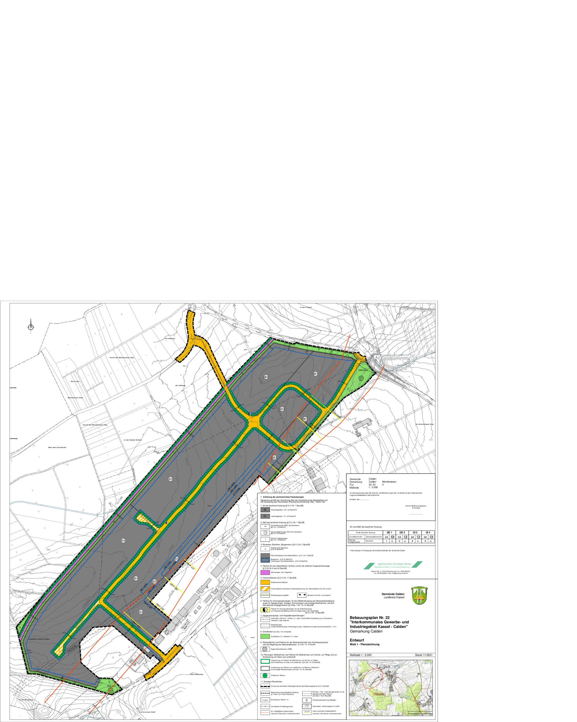 Die HLG sichert die dafür benötigten Grundstücke, wirkt an allen Planungen mit und beauftragt Planer bzw. Baufirmen. Die HLG trägt alle Verfahrenskosten und kümmert sich – in Kooperation mit der Wirtschaftsförderung des Landkreises Kassel - mit um die Vermarktung der Flächen, einschließlich der Kaufvertragsabschlüsse. Mit Satzungsbeschluss vom 02.06.2022 hat die Gemeinde Calden das Planungsrecht für den circa 10 Hektar großen ersten Bauabschnitt (1. BA) geschaffen.