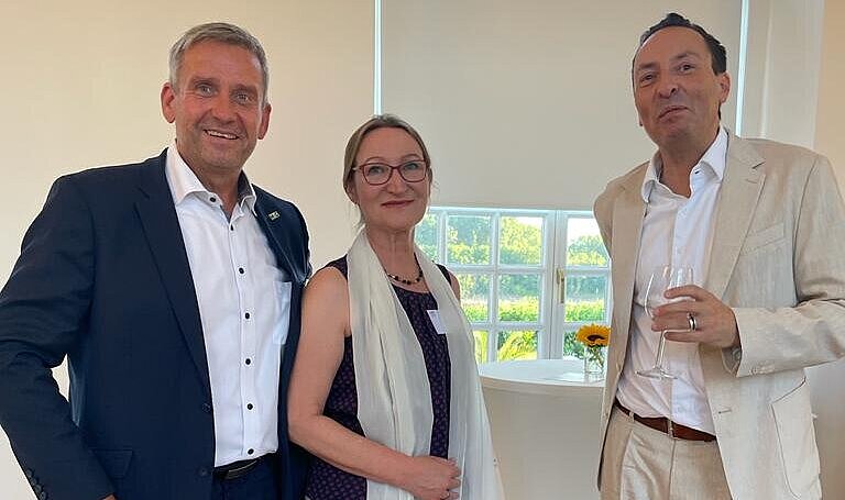 Von links: Geschäftsführer Dr. Gerald Kunzelmann mit Partnerin Anja Vogt und Staatssekretär Conz (HMUKLV)
