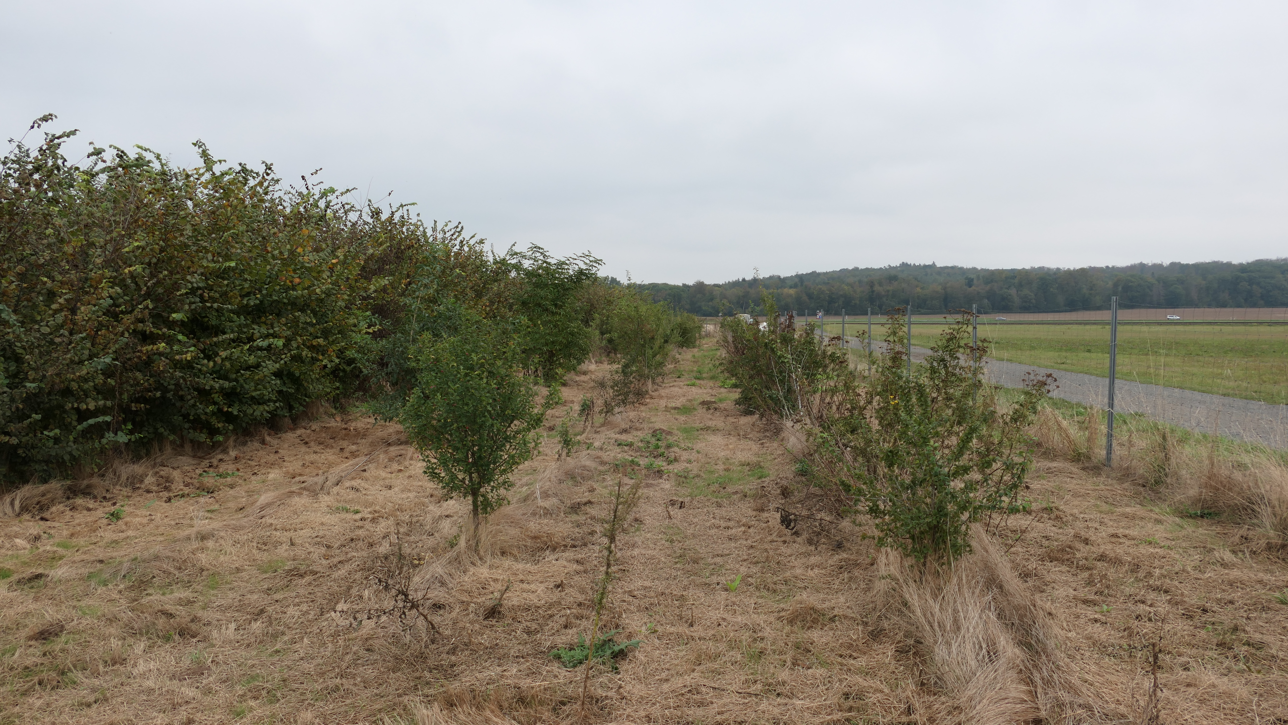 Als Übergang zum angrenzenden Offenland wurde ein stufiger Waldaußenrand aus niedrig und höher wachsenden Büschen regionaler Herkunft und Bäumen zweiter Ordnung angelegt. Neben dem Schutz des Waldes vor äußeren Einflüssen wie Wind und Trockenheit dient er als wertvoller Lebensraum lichtbedürftiger Tier- und Pflanzenarten.